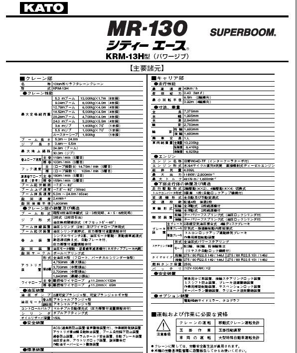 標題:KATO 加藤MR130起重機性能表