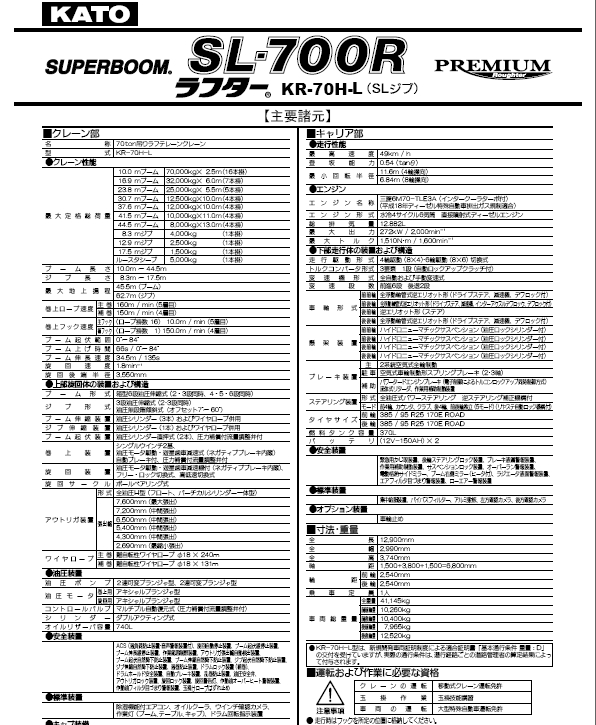 KATO 加藤SL700R起重機(jī)性能表